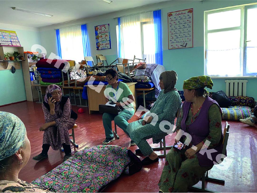 On September 27-28, 2022, Akyikatchy Atyr Abdrakhmatova, together with employees of the Ombudsman Office, conducted a survey among women who were forced to flee from the villages of Batken region shelled by the Tajik military. The women were temporarily placed in Arpa-Sai village, Kadamzhay town and Batken town.