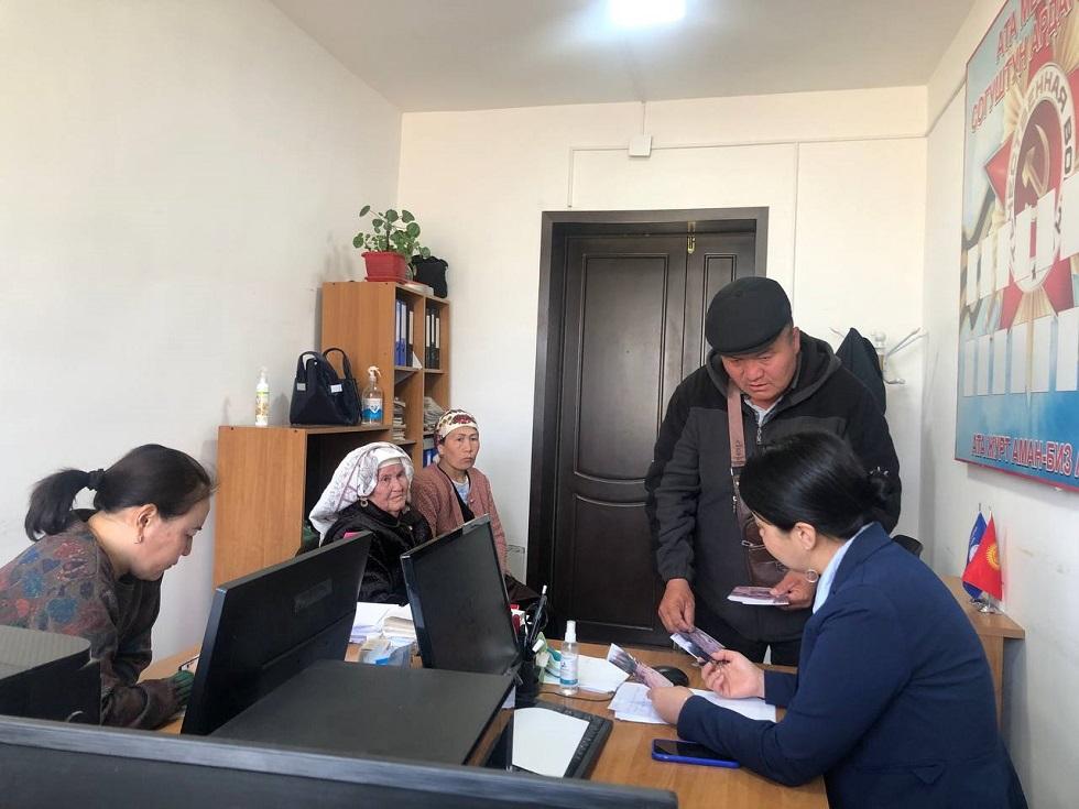 Акыйкатчы жеринде Социалдык коргоо министрлигинин өкүлдөрүнөн документтерди кабыл алууну жана маселени чечүүнү талап кылды.