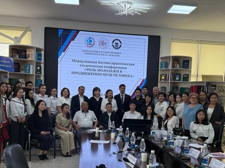 КРнын Акыйкатчысы (Омбудсмени) Жамиля Жаманбаева Ишеналы Арабаев атындагы Кыргыз мамлекеттик университетинде өткөн “Адам укуктарын алдыга жылдыруудагы жаштардын орду” аталышындагы конференцияга катышты.