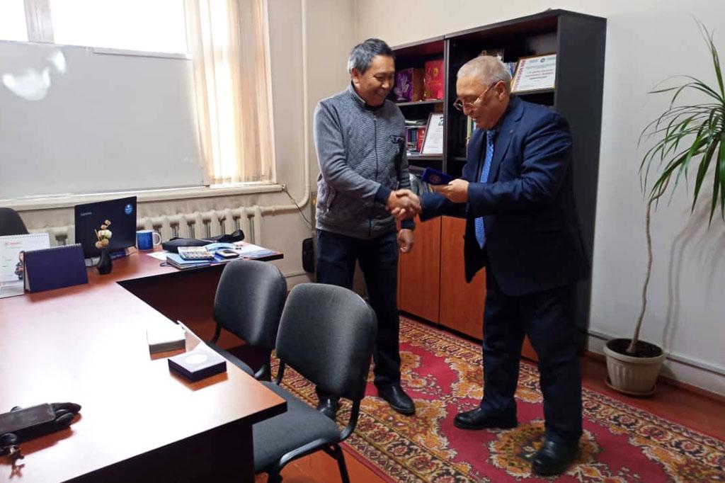 “Акыйкат” медалын КР Акыйкатчысынын (Омбудсменинин) Ош облусу жана Ош шаары боюнча ыйгарым укуктуу өкүлү Шамбетали Касымов тапшырды.
