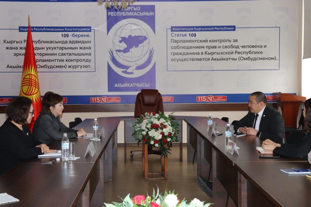 Жолугушуу учурунда тараптар адам укуктарын жана эркиндиктерин коргоо жаатында актуалдуу маселелер боюнча пикир алышты.