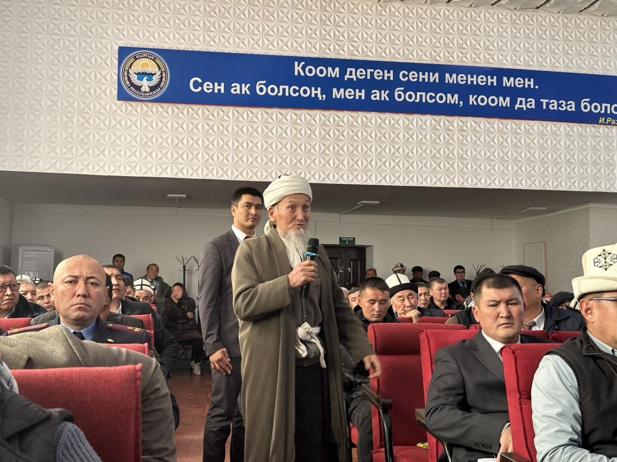 На собрании были озвучены проблемы этнических кыргызов, пастбищ, нехватка земельных участков и другие правонарушения.
