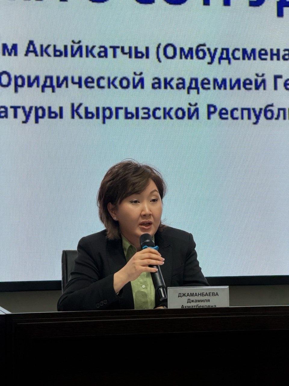 Акыйкатчы (Омбудсмен) КР Джамиля Джаманбаева встретилась со студентами Юридической академии Генеральной прокуратуры.