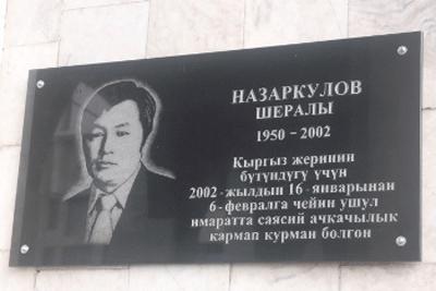Правозащитник Шералы Назаркулов во времена правления президента А. Акаева выступал против передачи кыргызских земель Узенгу-Кууш соседнему государству и в знак протеста объявил голодовку. На 22-й день политической акции 7 февраля 2002 года Шералы Назаркулов скончался. За проявленную активную гражданскую позицию Шералы Назаркулов посмертно награжден медалью «Эрдик».