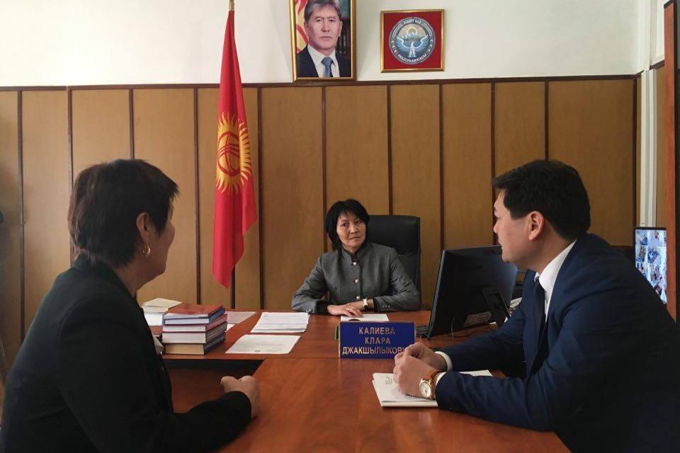 Сегодня, 16 февраля 2017 года, состоялась рабочая встреча главного правозащитника страны с председателем Таласского областного суда Кларой Калиевой.