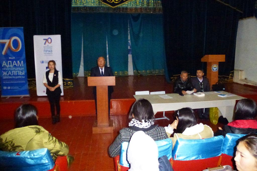 Уполномоченный представитель Акыйкатчы Ш. Касымов и эксперт регионального отделения УВКПЧ ООН З. Мадрахимов рассказали об историческом значении Всеобщей декларации прав человека, о предпосылках и причинах принятия данного документа, также о других международных договорах и пактах, касающихся прав человека.