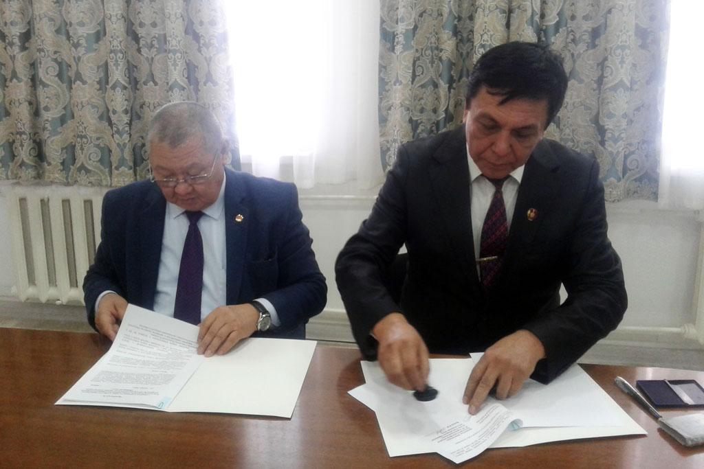 Меморандум подписали: Акыйкатчы (Омбудсмен) Кыргызской Республики Токон Мамытов и Председатель Общественного благотворительного фонда ветеранов ВС КР и правоохранительных органов «Союз ветеранов – Офицерская честь», полковник запаса Жаныбек Иманов.