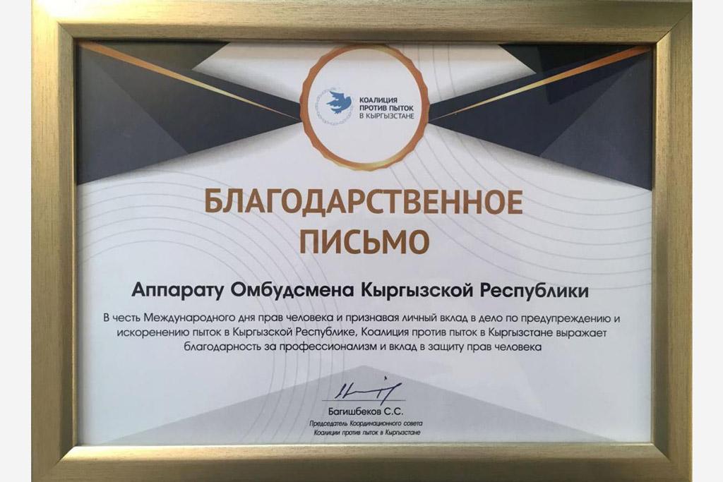 В завершении встречи представители Коалиции против пыток вручили благодарственное письмо Аппарату Омбудсмена за плодотворную работу в борьбе с пытками.
