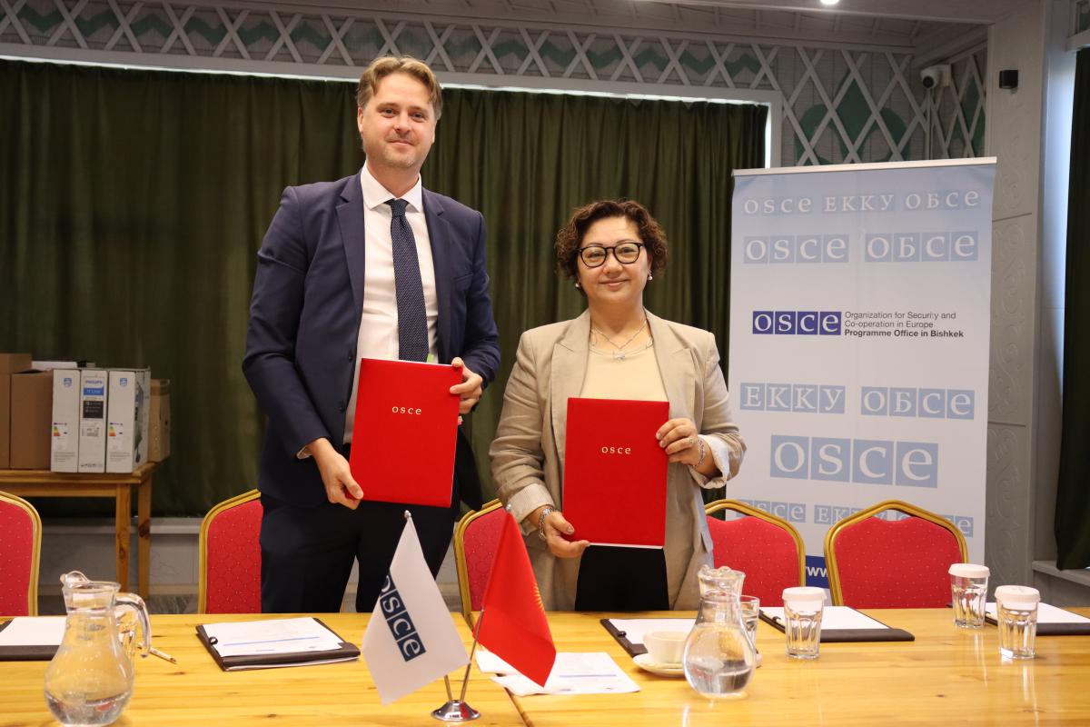 Затем состоялась официальная церемония подписания соглашения о передаче технического оборудования в дар Институту Акыйкатчы от Программного офиса ОБСЕ в Бишкеке.