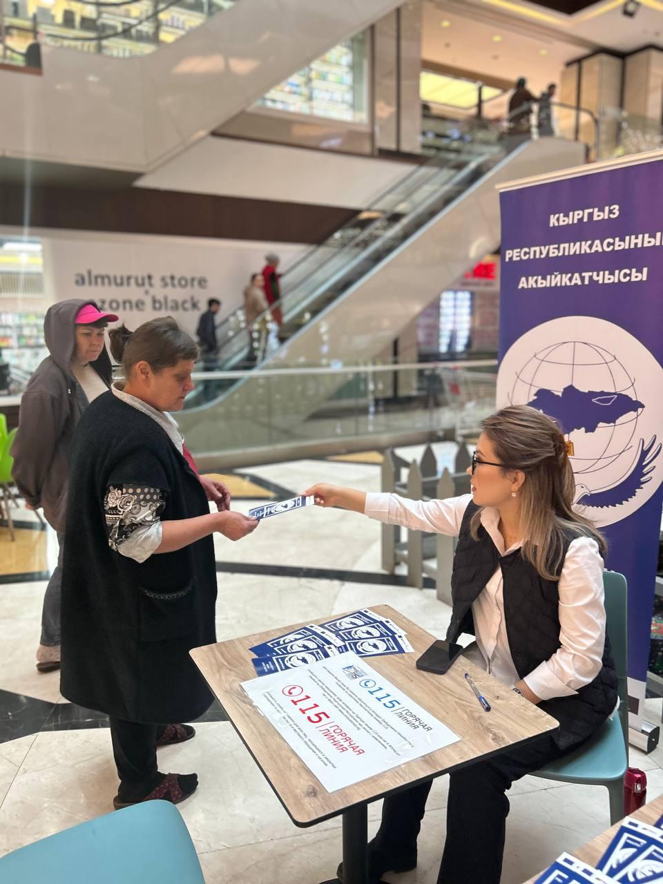 В Бишкеке в торговых центрах сотрудники Института Акыйкатчы (Омбудсмена) КР проводят правовые консультации для граждан КР.