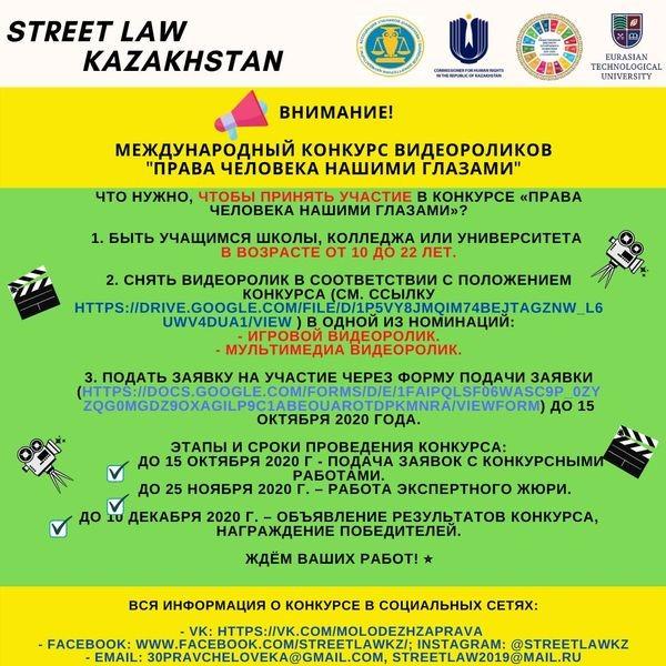 Все вопросы о Конкурсе следует направлять по электронному адресу: 30pravcheloveka@gmail.com с ОБЯЗАТЕЛЬНОЙ КОПИЕЙ на электронные адреса: streetlaw2019@mail.ru и kazhigulova@gmail.com