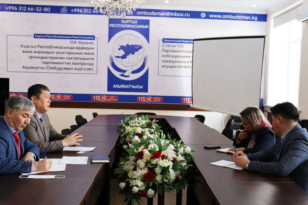 В ходе встречи стороны обсудили взаимное сотрудничество в области защиты прав человека государственными органами Кыргызской Республики, достигнуты договоренности в разработке совместных проектов по мониторингу и инспектированию мест лишения свободы, акцентировали внимание на работе нового института органов пробации, призванного создавать условия для исправления нарушивших закон граждан и приспособить их к жизни в обществе.