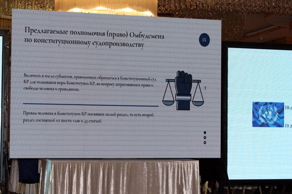 Ошондой эле, КР Акыйкатчы (Омбудсмен) аппаратынын Социалдык, экономикалык жана маданий укуктарды коргоо бөлүмүнүн башчысы С.Касымбекова Социалдык стационардык жана психиатриялык мекемелерде, ошондой эле жазык-аткаруу тутумунун мекемелерине жүргүзүлгөн мониторингдин жыйынтыктары менен коомчулукту тааныштырды.