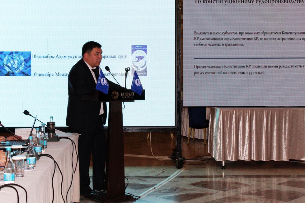 10-декабрь Адам укуктарынын эл аралык күнүнө карата КР Акыйкатчы институту тарабынан конференция өткөрүлдү. Иш-чарага мамлекеттик органдардын, эл аралык уюмдардын, бейөкмөт уюмдардын, жарандык сектордун жана массалык маалымат каражаттарынын өкүлдөрү катышты. Иш-чарага Кыргыз Республикасынын Акыйкатчы (Омбудсмен) аппаратынын жетекчиси Аскат Азарбеков модератордук кылды.