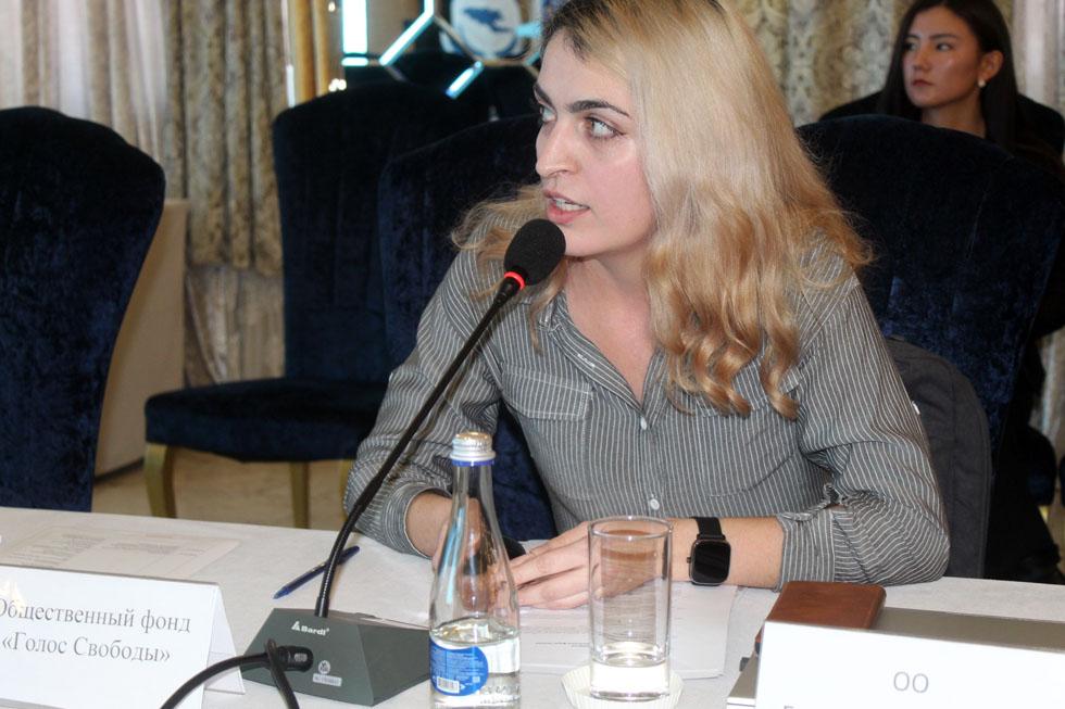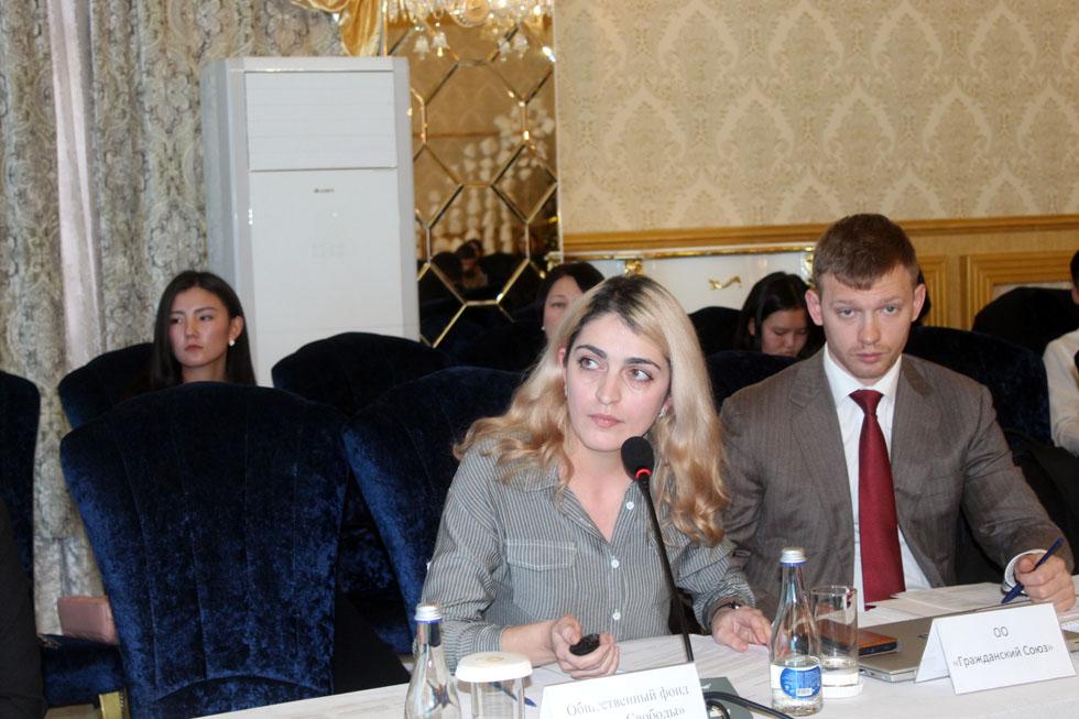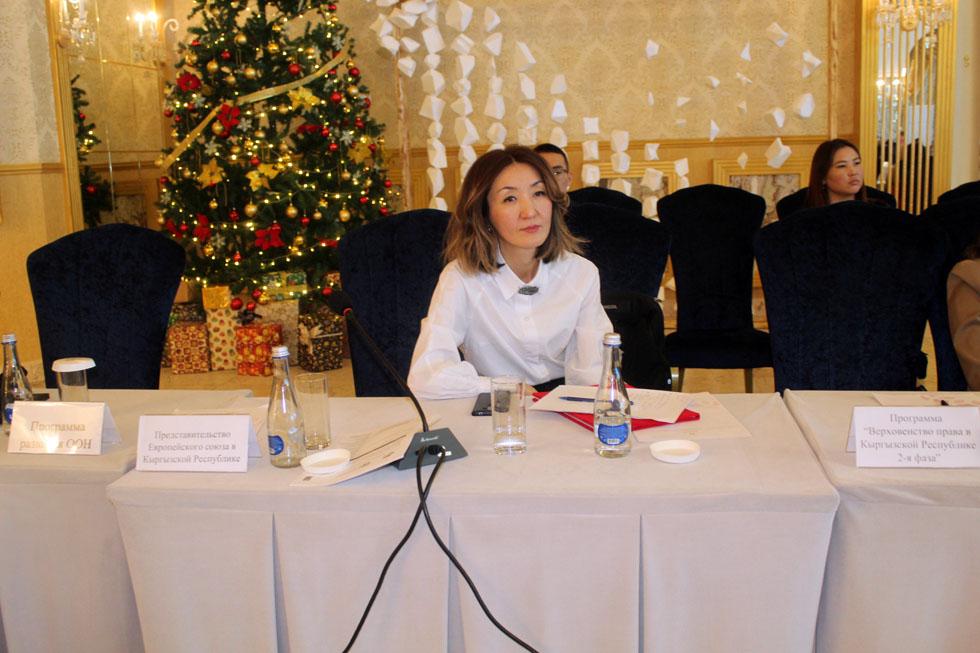 Акыйкатчы (Омбудсмен) аппаратынын Балдар, аялдар жана үй-бүлө укуктарын коргоо бөлүмүнүнү башчысы Н. Токтосунова «Кыргыз Республикасында аялдарды жана кыздарды зомбулуктун ар кандай түрлөрүнөн коргоо боюнча эл аралык стандарттардын сакталышы» тууралу баяндама жасады.