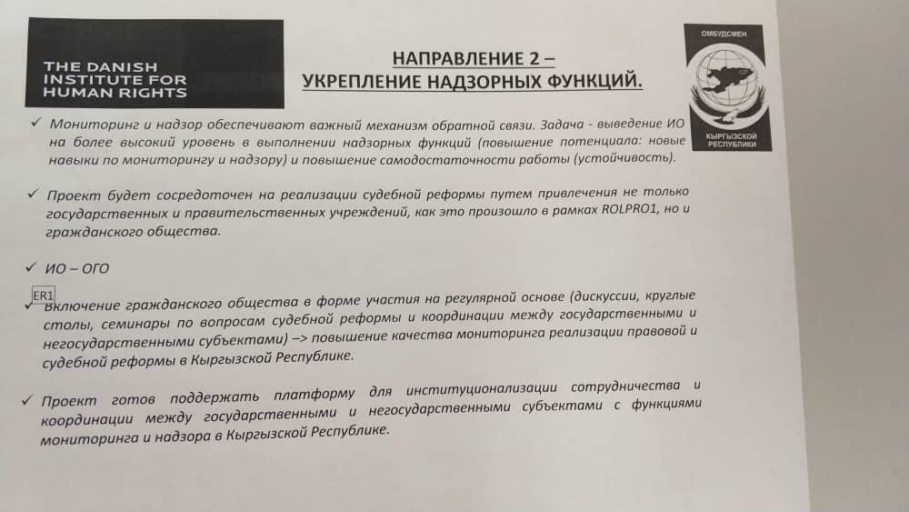 Бул жолугушуу КР Акыйкатчы институту менен биргеликте аткарылуучу иштердин так планын аныктоого жана түзүүгө багытталган.