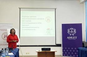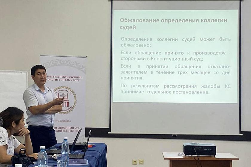 Улуттук укук коргоочу орган катары, адам укуктарын ашырууда тоскоолдук жараткан же дискриминация (теңсиздик) кылган мыйзамдардын беренелерин, талаптарын Конституциялык кепилдиктерге каршы келгендерди жокко чыгаруу боюнча ишибизди башташ үчүн КРнын Конституциялык соту менен бирге практикалык окуу өткөрдук"-деди Акыйкатчы Атыр Абдрахматова.