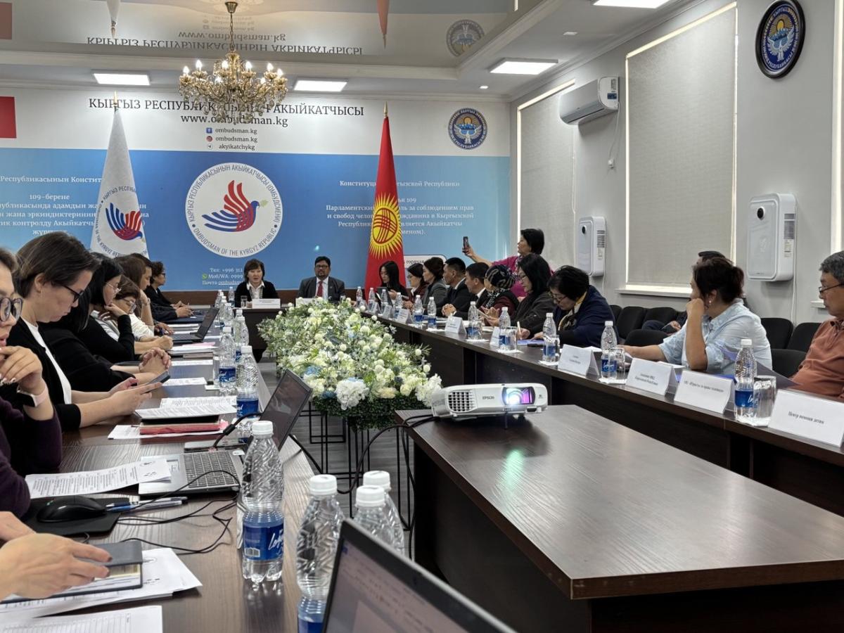 КРнын Акыйкатчы (Омбудсмен) Институтунда “Аялдар менен балдарды зомбулуктан коргоону күчөтүү  боюнча биргелешкен чаралар” темасында тегерек үстөл болуп өттү.