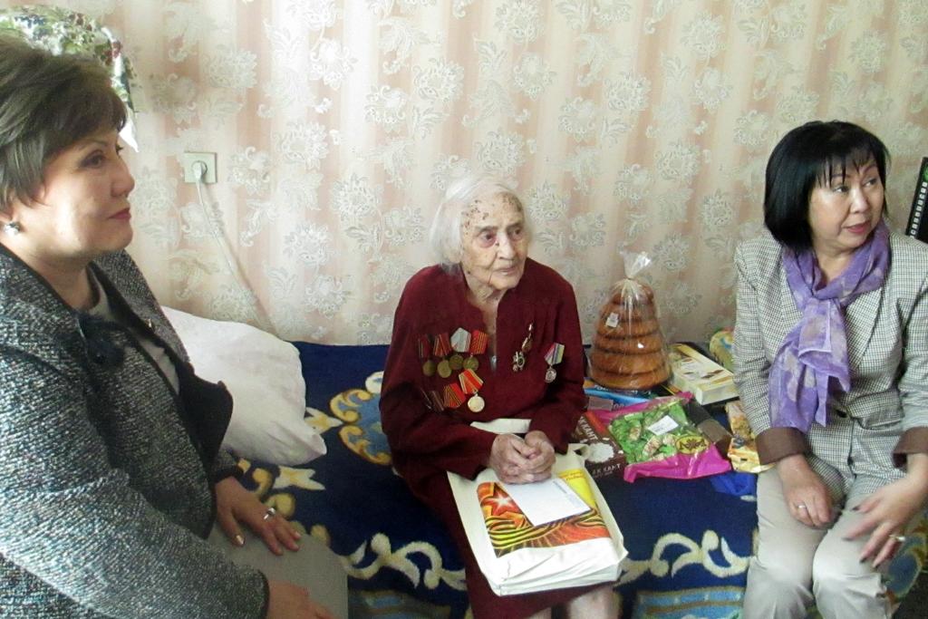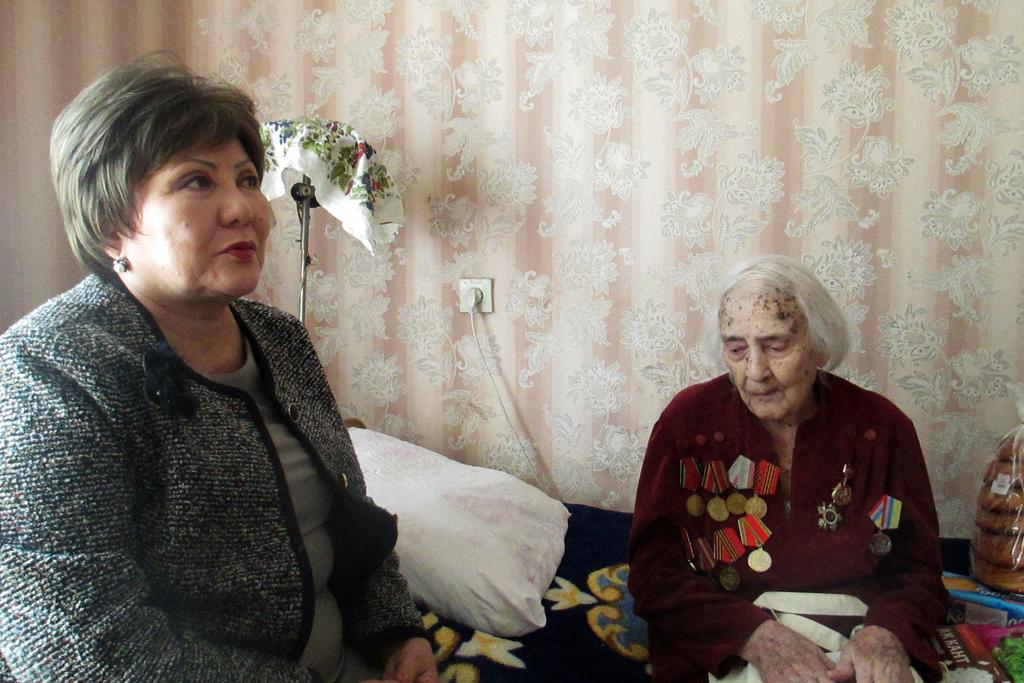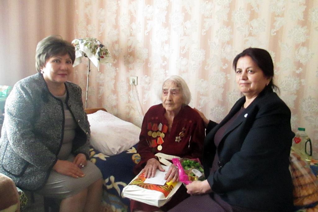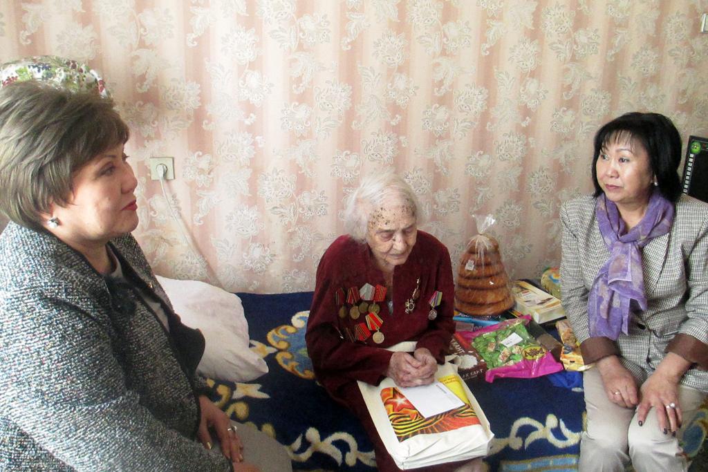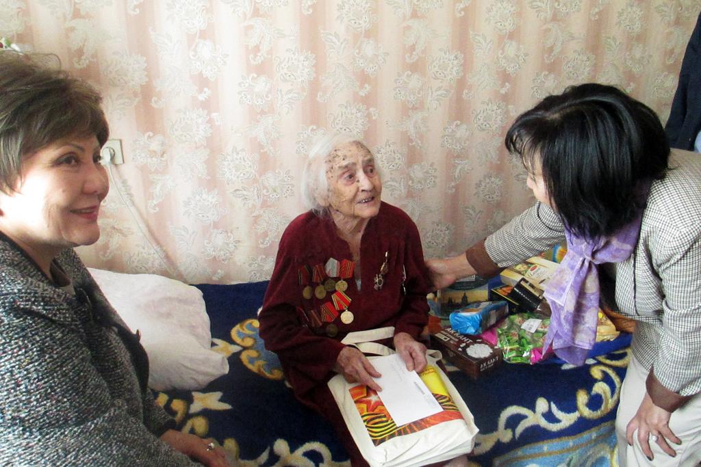 Акыйкатчы институтунун кызматкерлери Улуу Ата-Мекендик согуштун ардагери Любовь Костылеваны Жеңиш күнү менен куттукташты