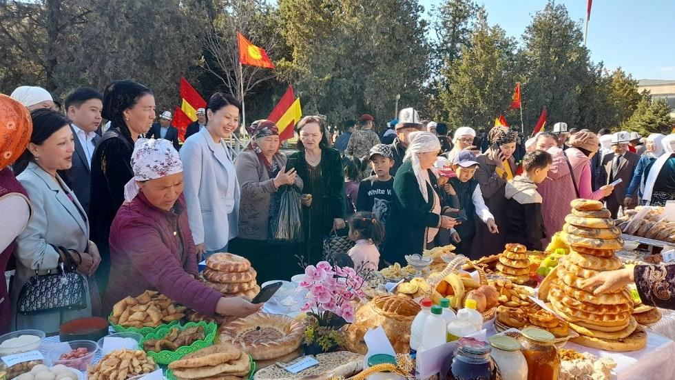 Баткендеги борбордук аянтта Нооруз майрамынын урматына боз үйлөр тигилип, улуттук тамак-аштар коюлган дасторкон жайылды.