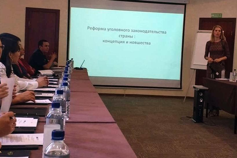Тренингдин жүрүшүндө «Жаза мыйзамдарын реформалоонун консептуалдык негиздери. Кыргыз Республикасынын жаңы Жазык кодекси», «Кыргыз Республикасынын Жүрүм-турумдар жөнүндө Кодекси: жүрүм-турум түшүнүгү, жүрүм-турумдарды системалаштыруу, жүрүм-турумдар үчүн жаза, жүрүм-турум үчүн айыптоолордун укуктук кесепеттери», Кыргыз Республикасынын Мыйзам бузуулар жөнүндө кодекси: мыйзам бузууларды системалаштырууда мыйзам бузуу түшүнүгү, мыйзам бузуу үчүн жазалоо. Жаңы жоболор», боюнча маселелер каралып, талкууланды. Бул темалар боюнча тренер- Жазык кодексин, Жүрүм-турумдар жөнүндө кодексти, Мыйзам бузуулар жөнүндө кодексти иштеп чыгуу боюнча жумушчу топтун мүчөсү Летова Ирина Витальевна болду.