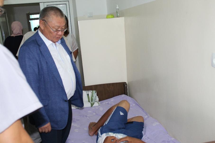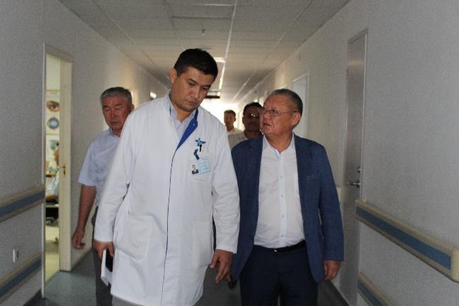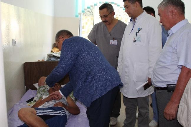 Алгач Акыйкатчы КР Улуттук Госпиталынын Манжаларды операция кылуу бөлүмүнө барып, анда жаткан 2 жарандын ден-соолугун сурады.