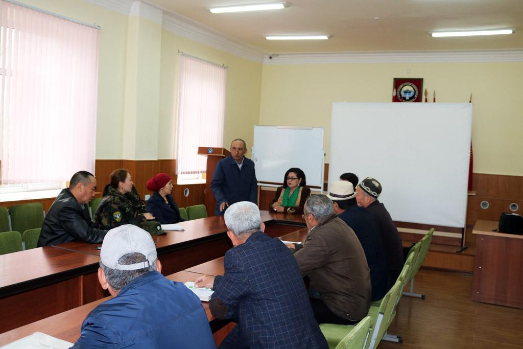 Жолугушууга аскер кызматынан пенсияга чыккан Лейлек районунун тургундары да келип катышышты.