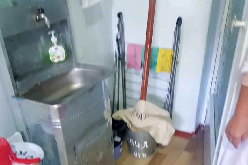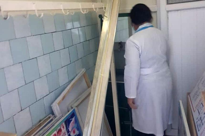 Неврология бөлүмүнүн кир жуучу бөлүгүндө бүтүндөй бөлүм үчүн бир эле раковина иштейт, ал эми душ бөлмөсү таптакыр иштебейт, бул дагы мыйзамдардын санитардык -гигиеналык талаптарын одоно бузуу болуп саналат.
