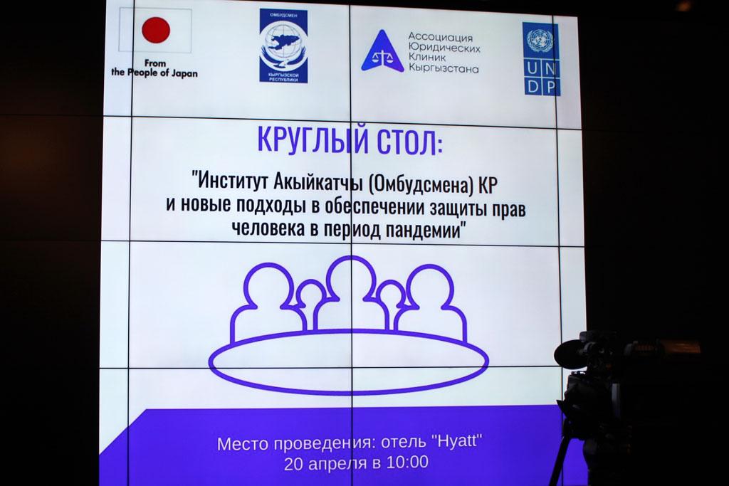 Бүгүн, 20-апрелде, Кыргыз Республикасынын Акыйкатчы аппаратынын жетекчилиги жана кызматкерлери, республиканын мамлекеттик органдарынын, ошондой эле эл аралык жана өкмөттүк эмес укук коргоо уюмдарынын, юридикалык клиникалардын өкүлдөрү "Кыргыз Республикасынын Акыйкатчы (Омбудсмен) институту жана пандемия учурунда адам укуктарын коргоону камсыз кылуунун жаңы ыкмалары"аттуу тегерек столго катышышты.