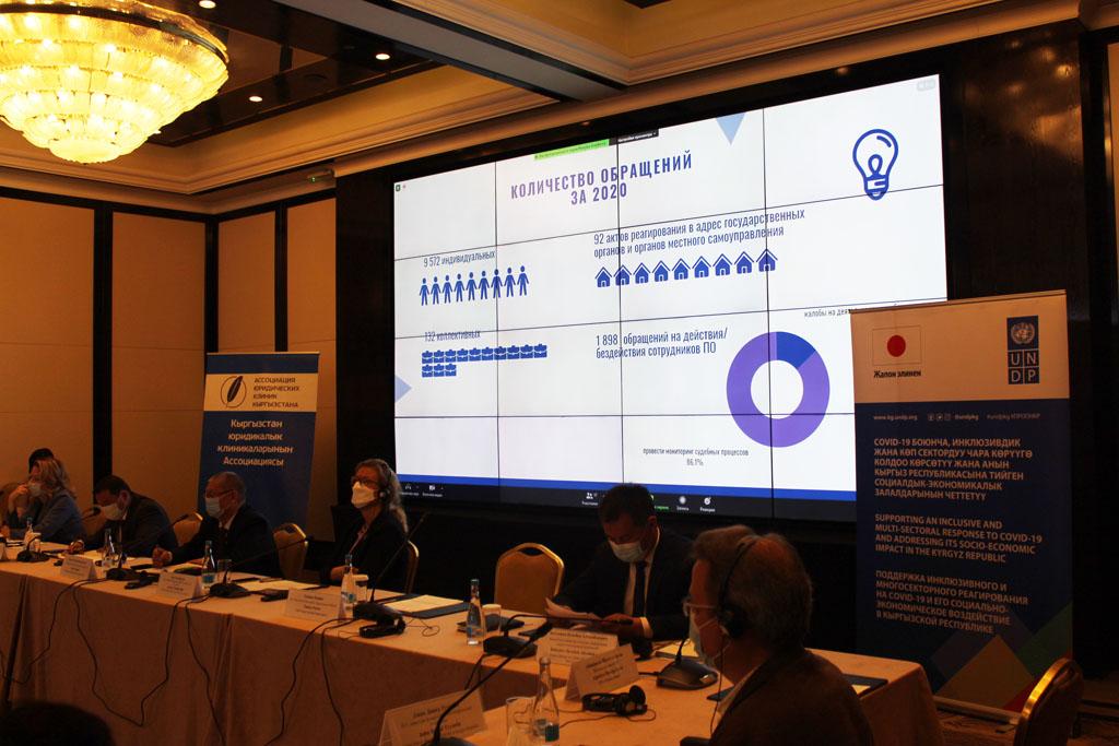 Маалымат үчүн: Бул тегерек стол Кыргыз Республикасынын Акыйкатчы Институтунун жана Кыргызстандын Укуктук Клиникалар Ассоциациясынын (АЮКК) демилгеси менен ПРООНдун "COVID 19га инклюзивдүү жана көп тармактуу жооп кайтарууну колдоо жана анын Кыргызстандагы социалдык-экономикалык кесепеттерин жоюу " долбоорунун алкагында Япония Өкмөтүнүн каржылык колдоосу менен өткөрүлүп жатат.