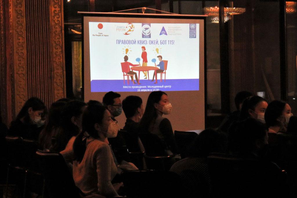 Иш-чара жаштардын укуктук сабаттуулугун жогорулатуу максатында өткөрүлдү. Анын жүрүшүндө Кыргыз Республикасынын Акыйкатчы институту "Акыйкатчы-бот 115" чат-ботунун презентациялады. Интерактивдүү чат-бот келип түшкөн суроо-талаптардын негизинде кыргыз жана орус тилдеринде тиешелүү маалыматтарды берип, калктын КР Акыйкатчык институтуна кайрылуу мүмкүнчүлүктөрүн кеңейтет жаңы акысыз маалымат булагы катары ал пандемия шартында да өзгөчө манилүү. Ошондой эле, чат-ботту колдонуу аз камсыз болгон жана мобилдүү эмес жарандарга жана мүмкүнчүлүгү чектелген балдарды тарбиялап жаткан үй-бүлөлөргө акысыз юридикалык жардам көрсөтүү формаларын кеңейтет жана квалификациялуу юридикалык жардамды үйдөн чыкпай акысыз алууну камсыз кылат Алгачкылардан болуп чат-ботту ушул юридикалык викторинанын катышуучулары сынап көрүштү, эми ал жөнүндө маалыматты достору жана тааныштары арасында жайылта алышат.
