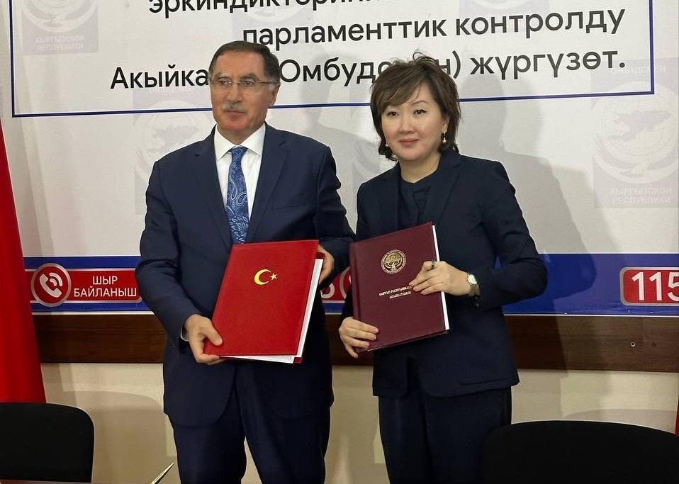 Бишкекте КРнын Акыйкатчысы (Омбудсмен) Джамиля Джаманбаева жана Түркиянын башкы Акыйкатчысы Шереф Малкоч адам укуктарын коргоо жаатында кызматташуу жөнүндө меморандумга кол коюшту.