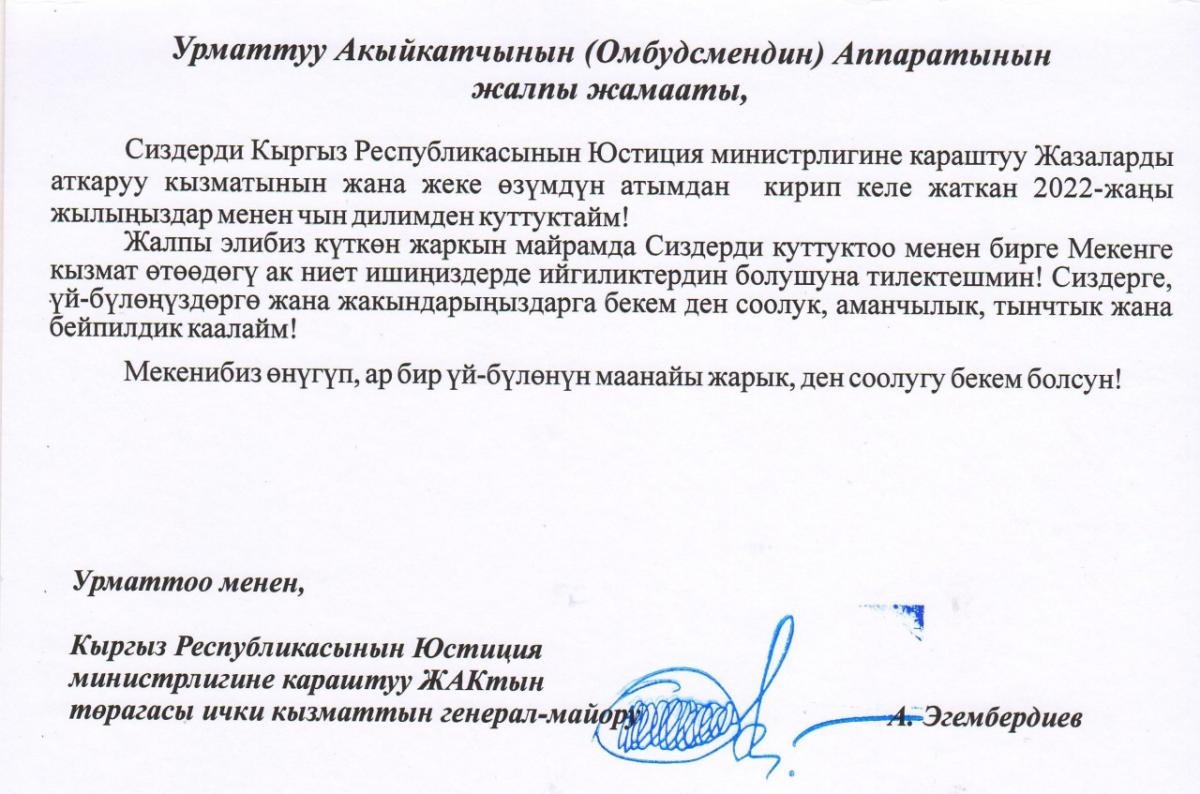КР Акыйкатчы (Омбудсмен) институтуна келген Жаңы жылдык куттуктоолор