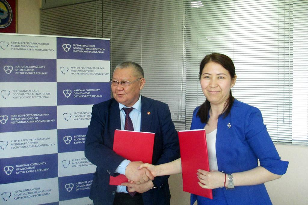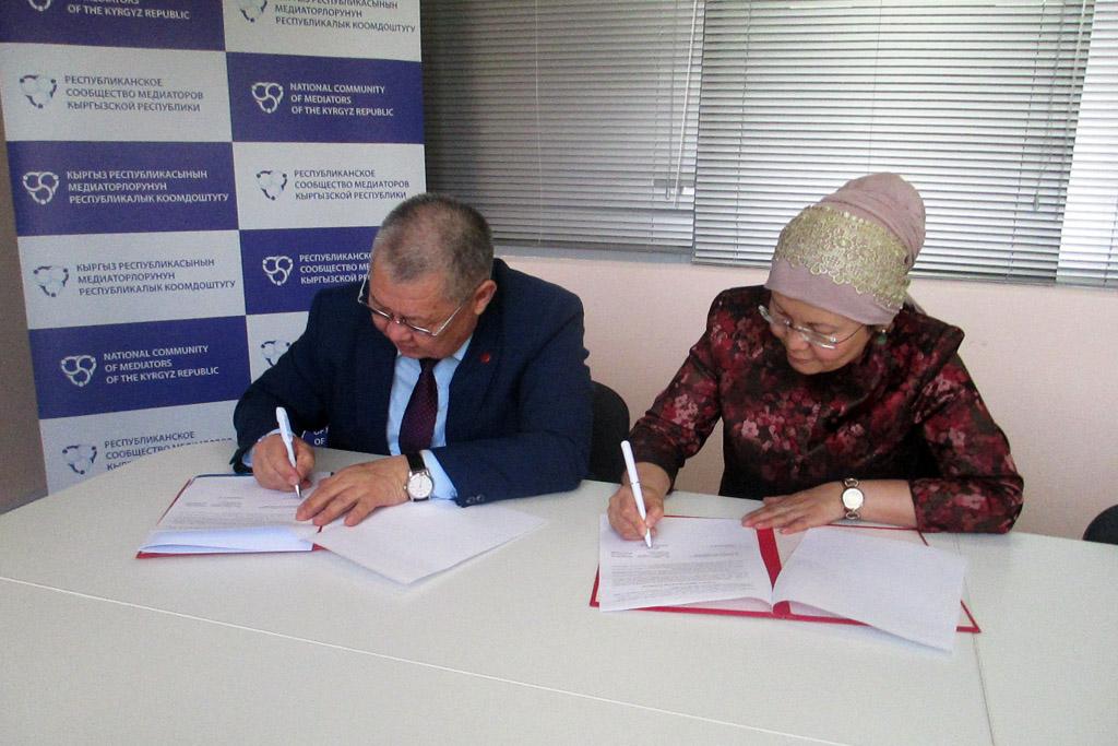 Жолугушуунун аягында Кыргыз Республикасынын Акыйкатчы Институту “Кыргыз Республикасынын медиаторлорунун республикалык шериктешиги” коомдук бирикмеси жана “Медиация улуттук борбору” коомдук бирикмесинин ар бири менен Меморандумга кол коюлду.