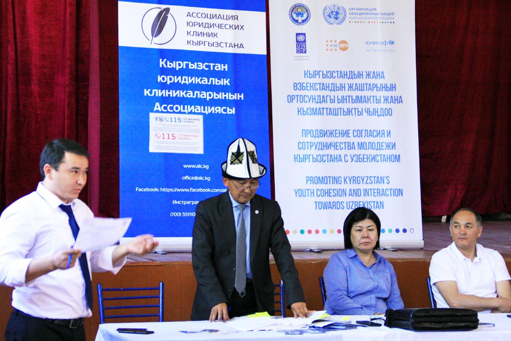 27-майдан 1-июнга чейин Жалал-Абад (Кербен, Кашка-Суу, Көк-Серек), Ош (Кара-Суу, Кашгар-Кыштак, Тепе-Коргон) жана Баткен (Суу-Баши, Айдаркен, Бирлик) облустарында жаштардын, ЖӨБ органдарынын өкүлдөрүнүн жана «юридикалык клиникалардын» консультациялык жолугушуулары өттү, анын максаты Кыргызстандын чек арага жакын жайгашкан, белгиленген айыл аймактарында жашаган жаш эркектер менен аялдардын ортосунда укуктук маалыматтардын жеткиликтүүлүгүнө болгон талаптарды жана көйгөйлөрдү иликтеп чыгуу болгон.