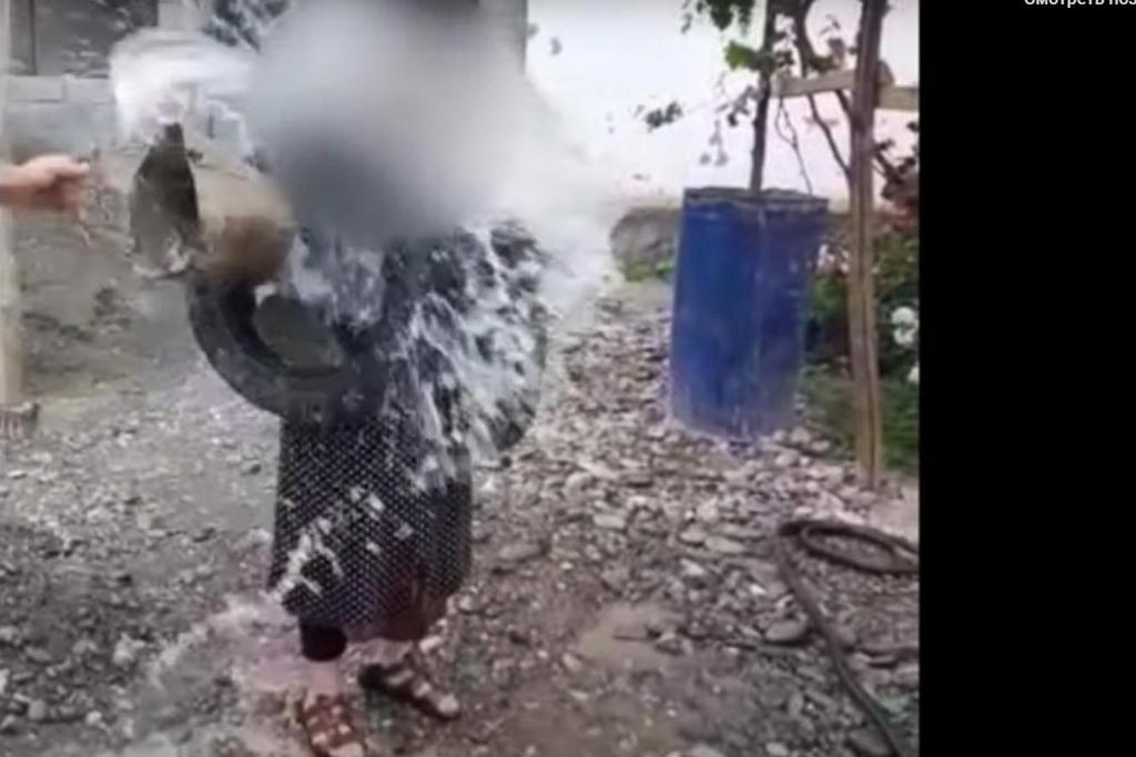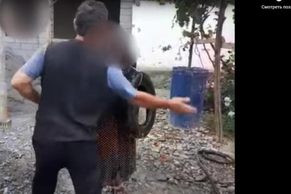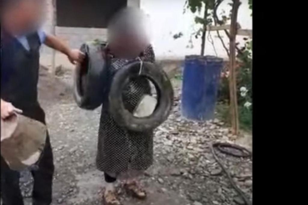 Тактап айтканда, эркек аялдын (болжолу үй-бүлө) моюнуна ичинде кирпич салынган дөңгөлөк байлап, үстүнөн ылдый чакалап суу чачып жана башка-көзгө ургулап жаткан видео жөнүндө сөз болуп жатат.