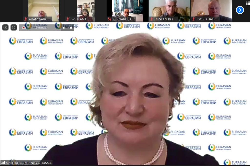 Бул майрамдык жана достук онлайн жолугушууга катышкандар: "Евразия Элдеринин Ассамблеясынын" (мындан ары - Ассамблея) Башкы катчысы, Евразия Өнүктүрүү Банкынын Башкармасынын Төрагасы, “Достояние России” фондунун камкорчулар кеңешинин төрагасы, экономика жана саясий илимдердин доктору Андрей Бельянинов; жолугушуунун демилгечиси - Ассамблеянын башкы кеңешинин теңтөрагасы, “Франко-Россия Диалог” Ассоциациясынын Вице-президенти Бернар Лозе; Жолугушуунун демилгечиси - Ассамблеянын башкы кеңешинин теңтөрагасы, Индиянын Улуттук Конгрессинин улуттук катчысы, “Саясат жана Башкаруу Фондунун” Президенти Далбир Сингх; Ассамблеянын башкы кеңешинин теңтөрагасы жана Россиянын дипломаттарынын ассоциациясынын кеңешинин төрагасы Игорь Халевинский; Ассамблеянын эксперттик кеңешинин төрагасы, Экономикалык стратегиялар институтунун башкы директору, экономика илимдеринин доктору, профессор жана Россия Илимдер академиясынын эксперти Александр Агеев; Сербиянын патриоттук “Биздин Сербия”, “Серб коду” ”уюмдарынын негиздөөчүсү Младжан Джорджевич; Азия тарыхчыларынын эл аралык ассоциациясынын президенти, «SHA-International Ratings Center КМШ, ШКУ жана БРИКС» эл аралык рейтинг агенттигинин башкы консулу Станислав Королев; Кыргыз Республикасынын Акыйкатчысы Токон Мамытов; "Маданият аркылуу тынчтык" эл аралык ассоциациясынын президенти, "Рухий Келишим Конгресси" эл аралык коомдук фондунун Президенти, Бүткүл Дүйнөлүк руханий маданий форумунун теңтөрагасы (Казакстан) Толеген Мухамеджанов; Башкортостан Республикасынын Премьер-министринин биринчи орун басары, Ассамблеянын Башкортостан Республикасындагы Өкүлчүлүгүнүн башчысы Андрей Назаров; RATM холдингинин президенти, Новосибирск регионалдык футбол федерациясынын президенти Эдуард Таран; Башкы катчынын биринчи орун басары - Ассамблеянын Башкы катчылыгынын башчысы, Россия элдер ассамблеясынын кеңешинин төрагасы, саясий илимдердин доктору Светлана Смирновалар болду.