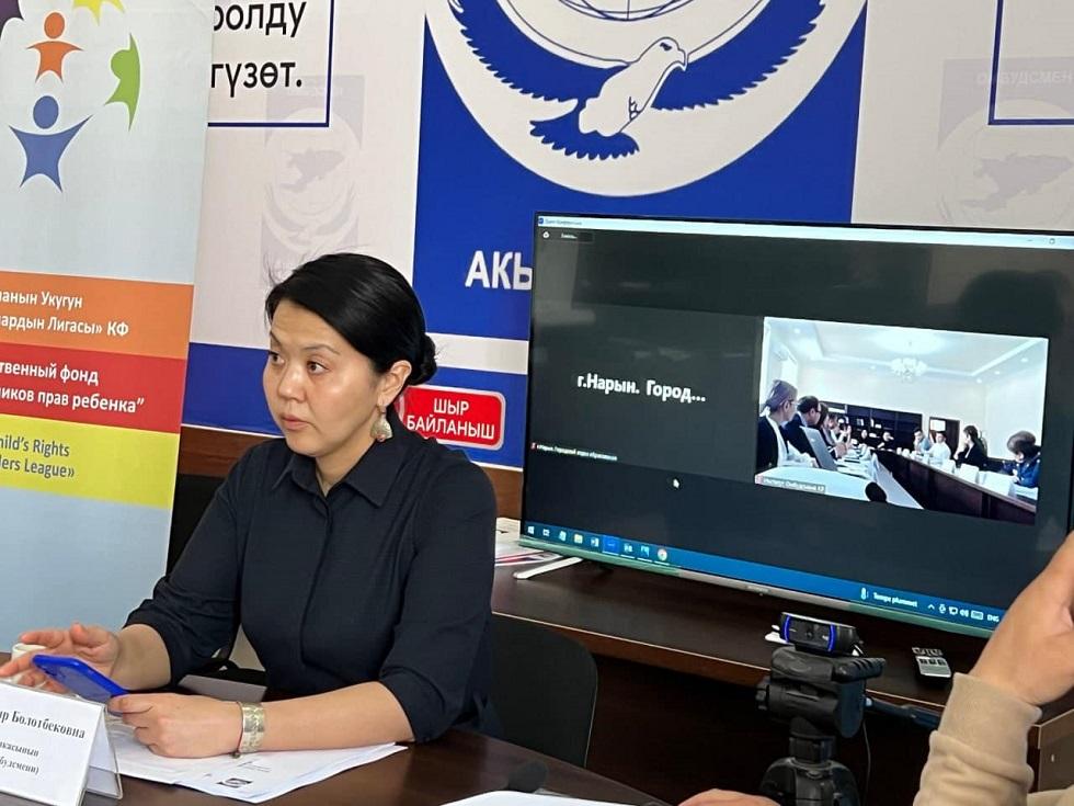 Кыргыз Республикасынын Акыйкатчысы (Омбудсмен) Атыр Абдрахматова Нарын областынын Нарын шаарында кыздарды гендердик зомбулуктан, мектеп окуучуларын укук бузуулардан, кылмыштардан (мектеп рэкетинен) коргоо боюнча мониторингдин бет ачары боюнча тегерек столго катышты.