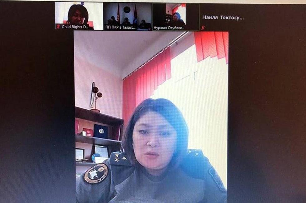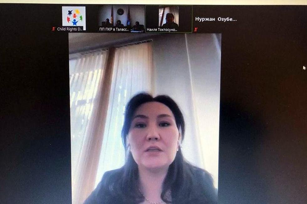 Бул иш-чара шаардык мэриянын жана «Балдардын укугун коргоочулар лигасы» коомдук фондунун демилгеси менен КР Акыйкатчы институту тарабынан жарыяланган балдардын укуктарын зомбулуктан жана ырайымсыз мамиледен коргоо боюнча бир айлыктын алкагында өткөрүлүүдө. Ага Талас шаарынын вице-мэри Мира Сейдикеримова, КР Акыйкатчысынын Талас облусу боюнча ыйгарым укуктуу өкүлү Жакшыгүл Узакбаевалар менен бирге Акыйкатчы институтунун Балдардын, аялдардын, үй-бүлөнүн укуктарын коргоо бөлүмүнүн башчысы Наила Токтосунова, КР ИИМдин Жашы жетпегендердин иши боюнча инспекция башчысы Нуржан Адылова, эксперт катары “Балдардын укугун коргоочулар лигасы” коомдук фондунун директору Назгүл Турдубекова жана Бүткүл россиялык калыбына келтирүүчү медиация ассоциациясынын төрагасы Рустем Максудовдор онлайн катышып, сөз сүйлөштү.