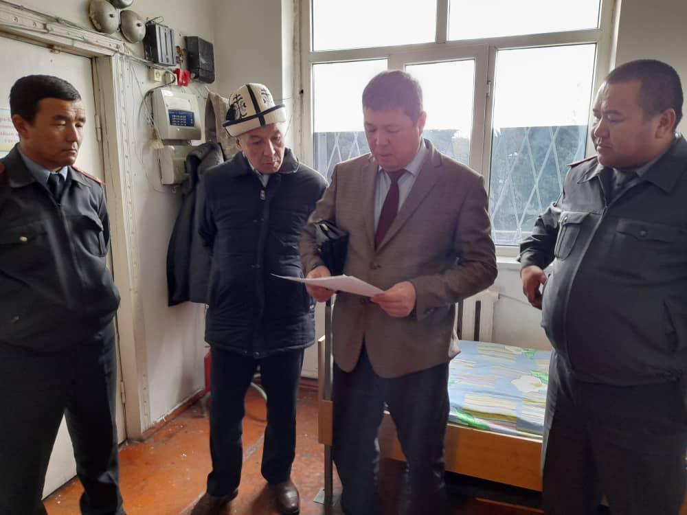 Кара-Кулжа райондук ички иштер бөлүмүнүн убактылуу кармоочу жайына мониторинг жүргүзүү учурунда 4 камера бар, мониторинг учурунда УКЖда кармалган адамдар жок.