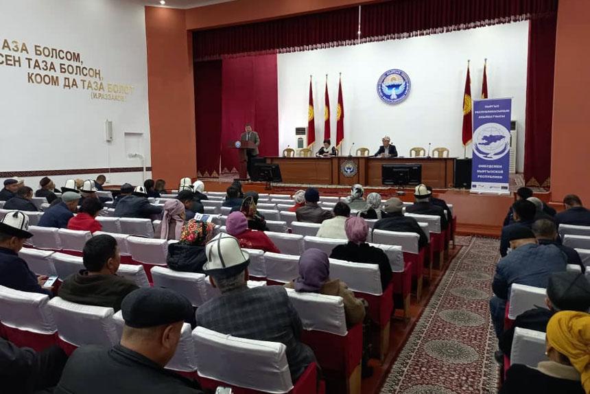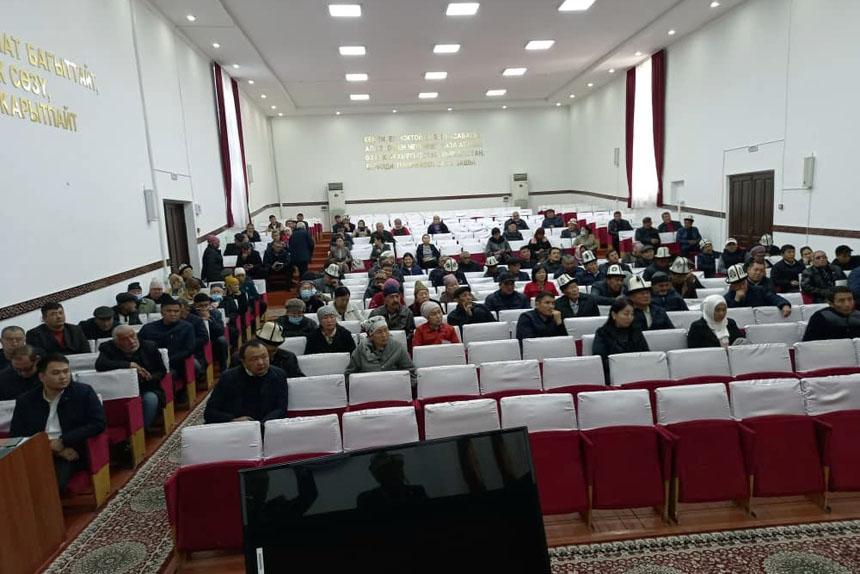 “Укук кербени” долбоорунун катышуучулары Кара-Суу районунун тургундары менен жолугушту