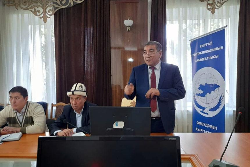 «Укук Кербени» долбоорунун алкагында КР Акыйкатчысынын орун басары А.С. Колопов жетекчилик кылган топ 2021-жылдын 26-октябрь күнү Ош шаарынын жарандары менен жолугушту. Эл менен болгон жолугушуу Ош шаардык мэриясынын жыйындар залында өттү.