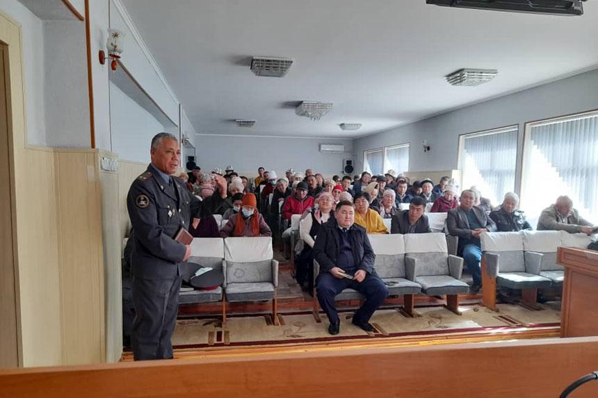 «Укук Кербени» долбоорунун алкагында КР Акыйкатчысынын орун басары А.Колопов жетекчилик кылган топ 2021-жылдын 20-октябрь күнү  Ош облусунун Алай районунун тургундары менен жолугушту.