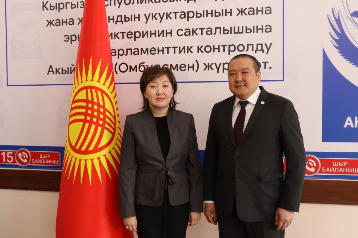 КРдин Акыйкатчысы Жамиля Жаманбаева Монголиянын адам укуктары боюнча улуттук комиссиясынын башчысы Жаргалсайхан Хунан менен жолугушту.