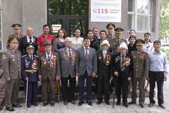 «Мы собрались здесь накануне великого праздника – Дня Победы. День Победы объединяет людей самых разных взглядов, самых разных профессий, возрастов и поколений. С каждым годом он все дальше от нас по времени. Воспоминания фронтовиков и очевидцев становятся историей, настоящим сокровищем. И задача нашего поколения – не только сберечь память о подвиге советского народа, но и сохранять остроту восприятия этого грандиозного исторического события», –тепло поздравил с наступающим Днем Победы Кубат Оторбаев.