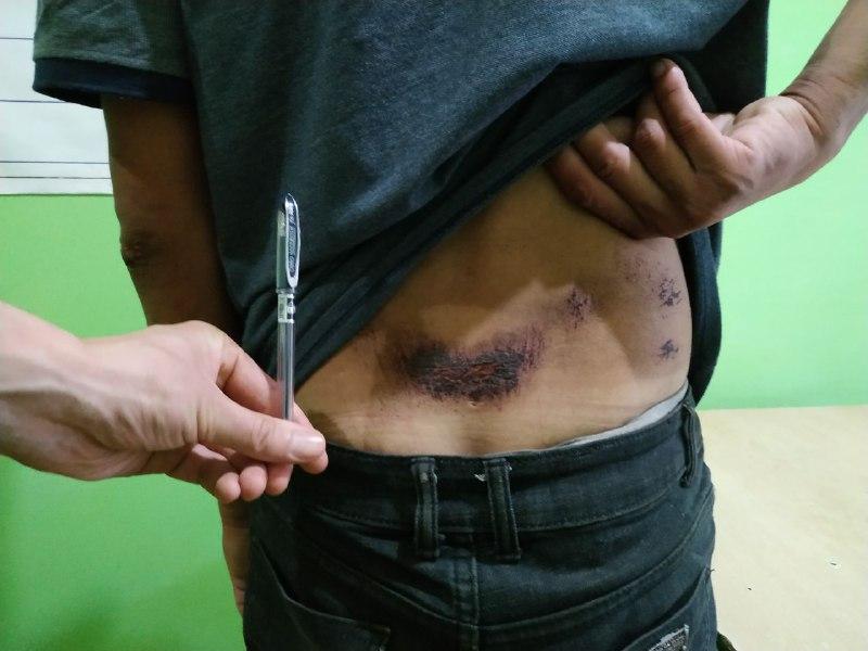 Так, А.Р. пояснил, что 10 июня 2019 г. в 11:00 часов на ул. Кулиева его избил участковый с курсантом, которые его задержали за кражу телефона, при этом избивал ещё владелец телефона. По его словам, избиение продолжилось в отделении милиции, где его ударили по челюсти и начали волочить по полу и бить пластиковой бутылкой наполовину наколенной водой. Избиение продолжалось около 2 часов.