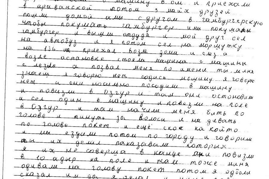 В присутствии его мамы у юноши взята объяснительная записка. Со своей стороны она (мама) написала официальное заявление на имя Омбудсмена КР. Следует отметить, что при визуальном осмотре следов побоев на теле подростка не обнаружено.