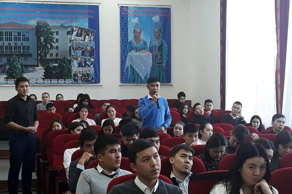В ходе встречи студенты задавали вопросы, касающиеся изменений и дополнений в Конституцию КР, ущемления прав мигрантов за рубежом и правовой помощи, которая им оказывается, воинской службы в рядах Вооруженных Сил КР, а также системой проведения мониторингов судебных процессов и т.д. На все эти вопросы сотрудники аппарата Омбудсмена ответили в полном объеме.