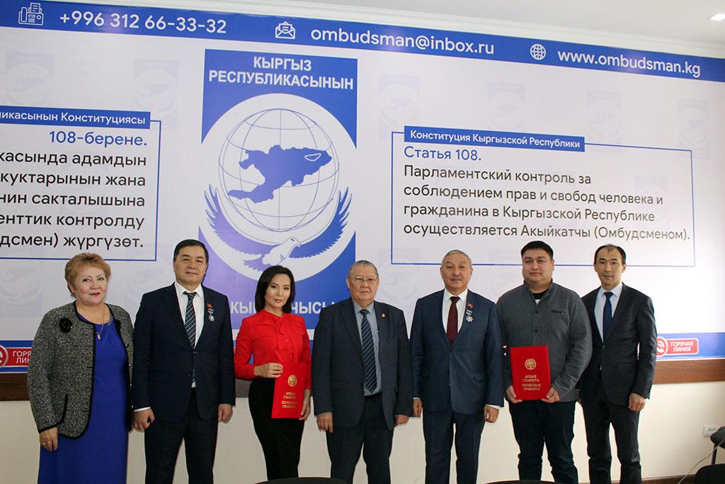 Почетными грамотами Омбудсмена Кыргызской Республики награждены выпускающий редактор телеканала «Ала-Тоо 24» Венера Осмокеева; ведущий, специальный корреспондент телеканала «Ала-Тоо 24» Нурбек Иманов; журналист, общественный деятель Эльнура Кулуева.