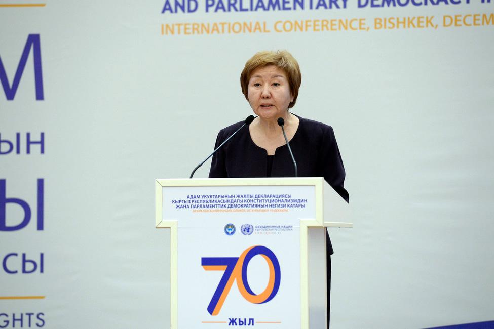 Глава государства выступил с речью. Также на конференции выступили спикер Жогорку Кенеша Дастан Джумабеков, председатель Верховного суда Гульбара Калиева, вице-премьер-министр, председатель Координационного Совета по правам человека при правительстве КР Жениш Разаков, исполняющий обязанности постоянного координатора ООН, представитель ЮНИСЕФ Юкиэ Мокуо, Акыйкатчы Токон Мамытов.